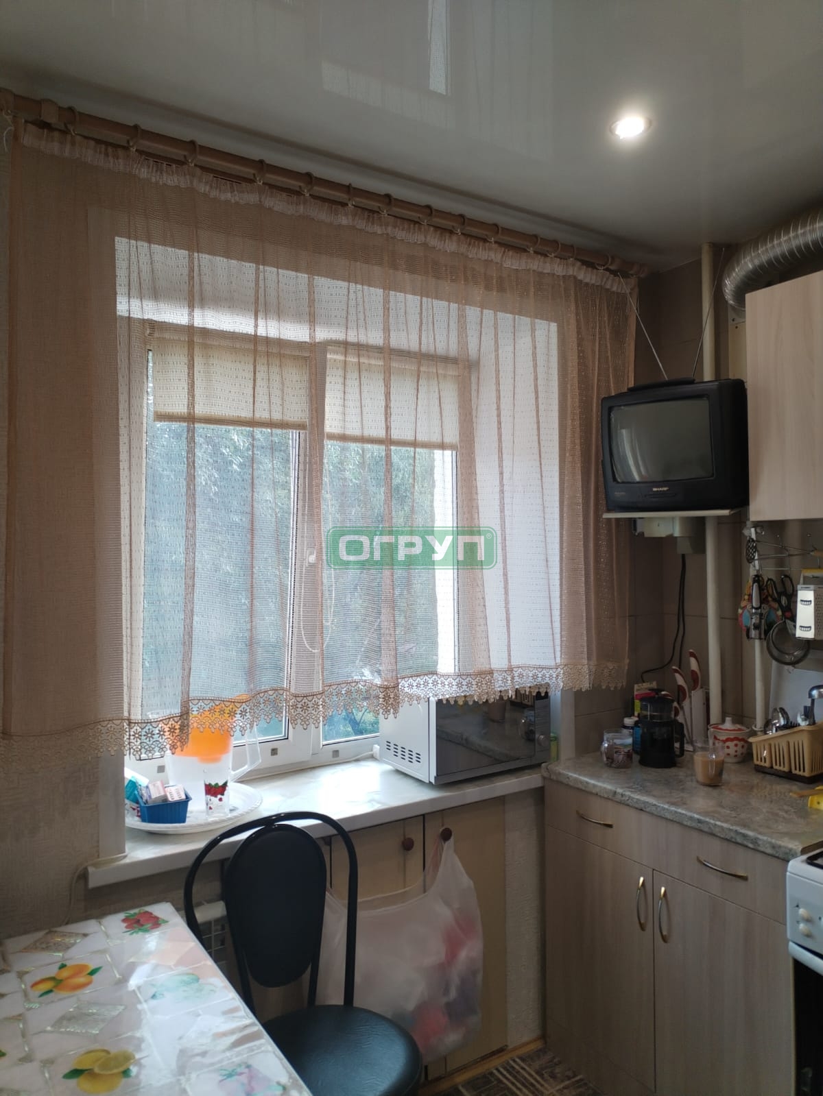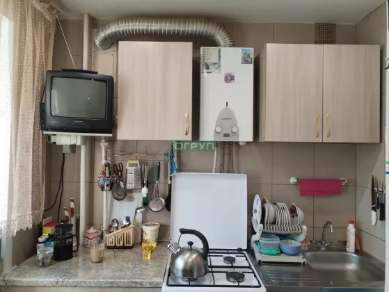На кухне новая газовая колонка. Остаётся кухонный гарнитур, плита и шкаф в комнате.