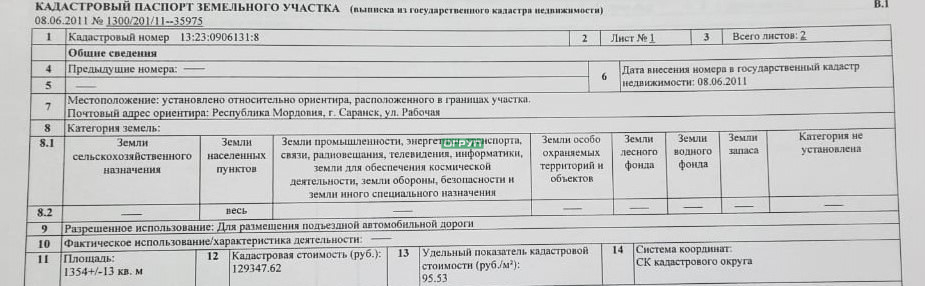 | Кадастровый номер участка | 13:23:0906131:8 |